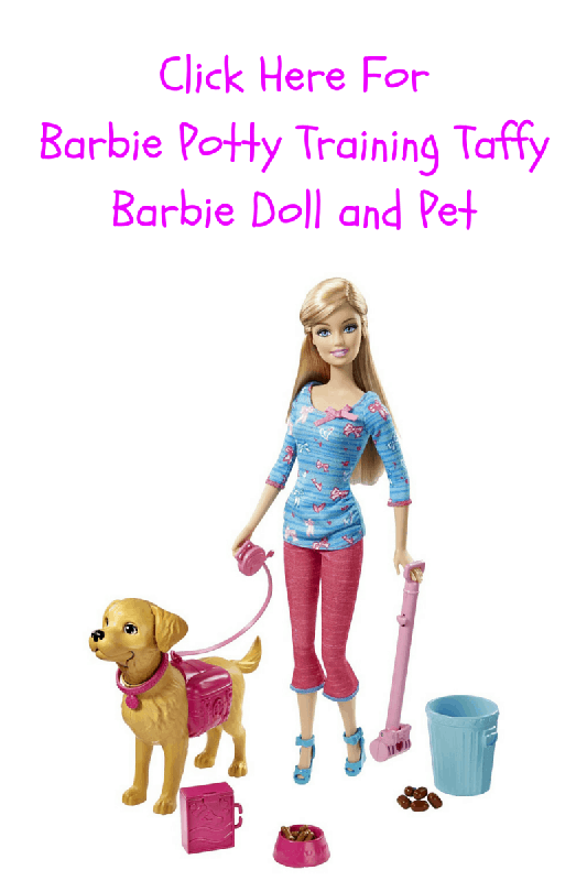 The Barbie Potty Training Taffy Barbie Doll and Pet is the perfect toy for kids who love dogs and Barbie dolls. This interactive Barbie Doll comes with a great amount of accessories, all equipped to help her potty train her dog, Taffy. This toy features all of the pieces and accessories, including Taffy the dog who actually pees and poops.